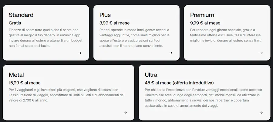 Chi non ha ancora un conto Revolut può valutare quale piano scegliere in base alle proprie esigenze consultando la nostra recensione sul conto Revolut.